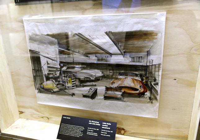 Noticeably streamlined since 'Goldfinger', model on a backdrop of the development sketches.