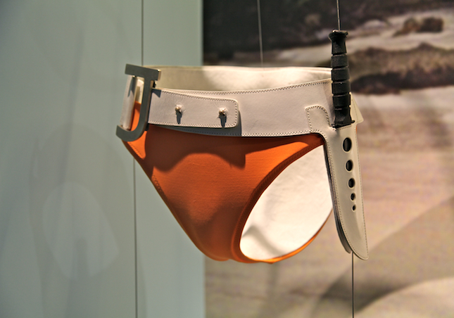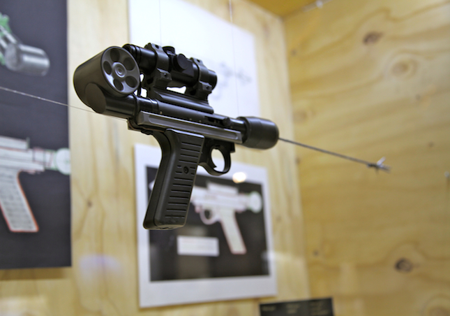 Designerly expectations were set at salivation levels with the awesome press release video doing the rounds earlier this month. Stopping by the show this week we're glad to report moments of child-like glee in contemplation of the impressive array of original concept artwork, guns and gadgets and other gems from the films such as a classic Aston Martin DB5 and Halle Berry's dagger wielding orange bikini. We've got serious design envy for the guys that get to let their creativity loose in the world of 007.
