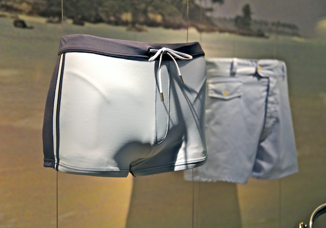 One for the ladies - those light blue trunks worn by a burly Daniel Craig in 'Casino Royale' accompanied by a recreation of Sean Connery's beach shorts from "Thunderball".