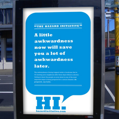 Designer: Emma Watson Location: Wellington, New Zealand Category: Graphics/Branding/Identity Award: Student Notable HI - the Hazard InitiativeNew Zealand is prone to natural disasters, especially earthquakes. In times of civil crisis a neighbourly support network can make all the difference. The Hazard Initiative is a subsidiary of Civil Defence, providing ways to initiate the pooling...